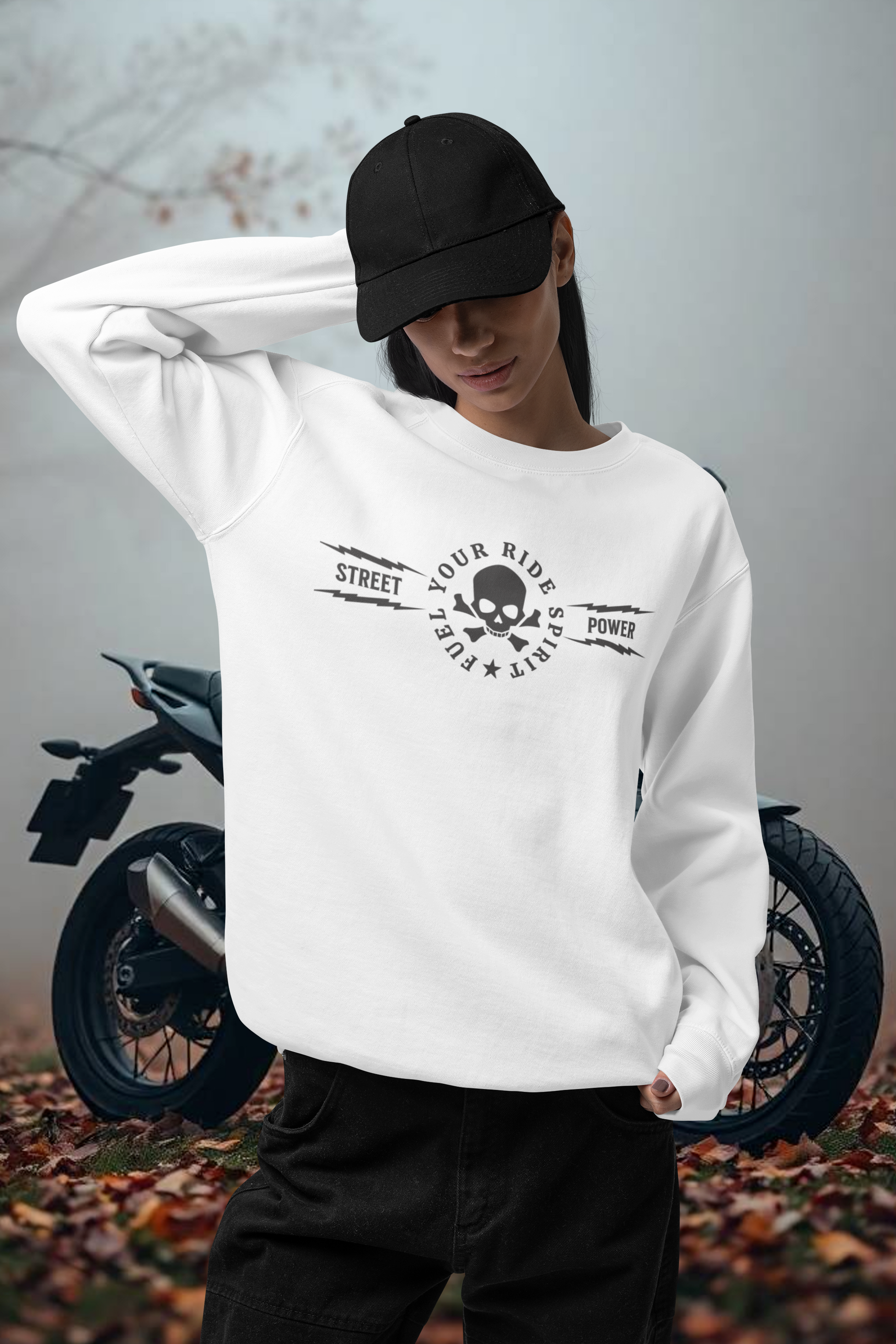 Erlebe pure Straßenenergie mit dem Street-Power-Sweatshirt – gemacht für Biker, die Freiheit, Kraft und Leidenschaft leben. Der markante Print steht für Stärke, Adrenalin und den unbezähmbaren Spirit der Straße. Ob auf der Maschine oder im Alltag – dieses Sweatshirt zeigt, was in dir steckt.